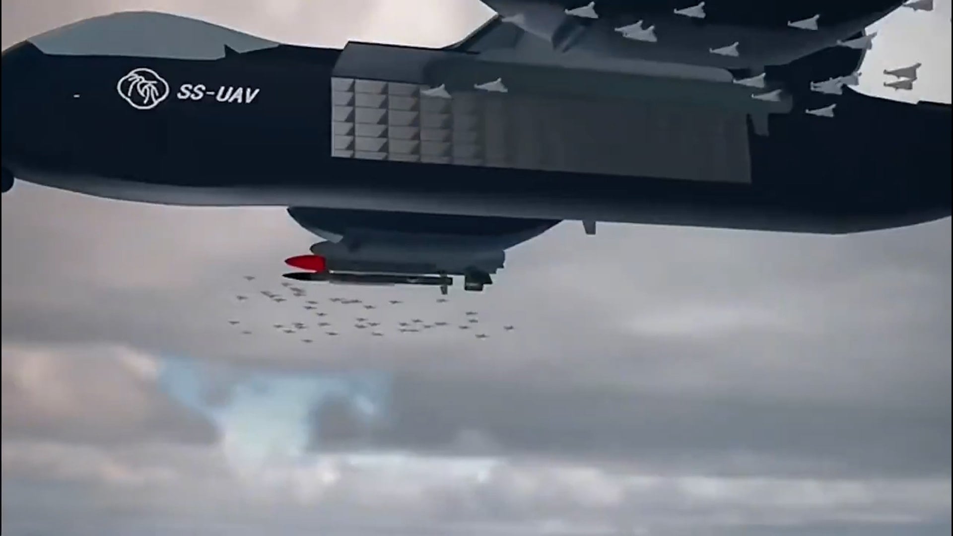 16 ton yük, 8 askı noktası, hava-hava füzeleri, anti-gemi füzeleri, kamikaze dronlar veya 200+ FPV drone swarms taşıyabiliyor.
