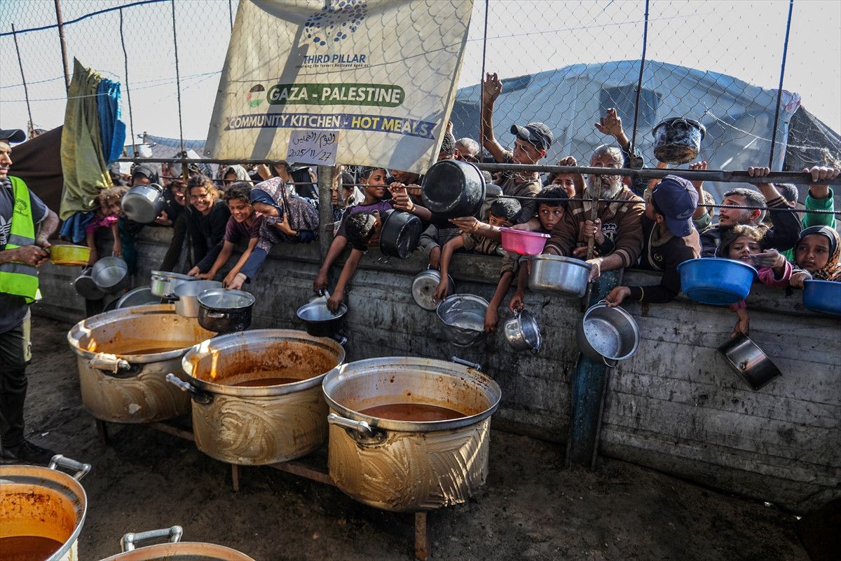Filistinliler, ateşkes yürürlükte olmasına rağmen Gazze’deki insani krizin derinleşmesi nedeniyle burada dağıtılan sıcak yemek ve temel gıda desteğiyle günlük ihtiyaçlarını karşılamaya çalışıyor.